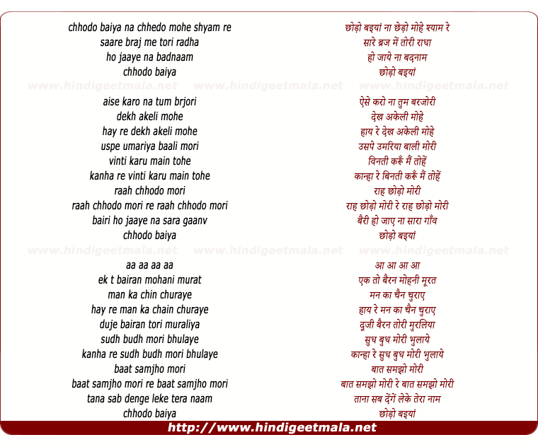 Chhodo Baiyya Na Chhedo Mohe Lyrics Aarti Mukherjee Lyricstashan